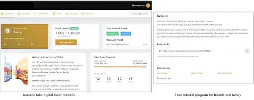 Si un usuario cae en la trampa, es redirigido a un sitio web fraudulento, pero bien diseñado y completamente funcional antes de la etapa final, donde ya todo estaba perdido para las víctimas. La estafa requería del ataque a usuarios de criptomonedas como Bitcoin, con las que debían pagar el supuesto token de Amazon. La intención de este método de pago es hacer imposible el rastreo de una transacción.